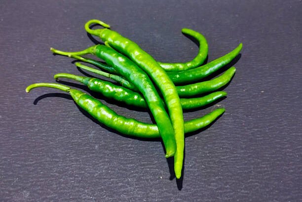 Vibrant and spicy green chillies, hygienically packed to maintain freshness and quality.
